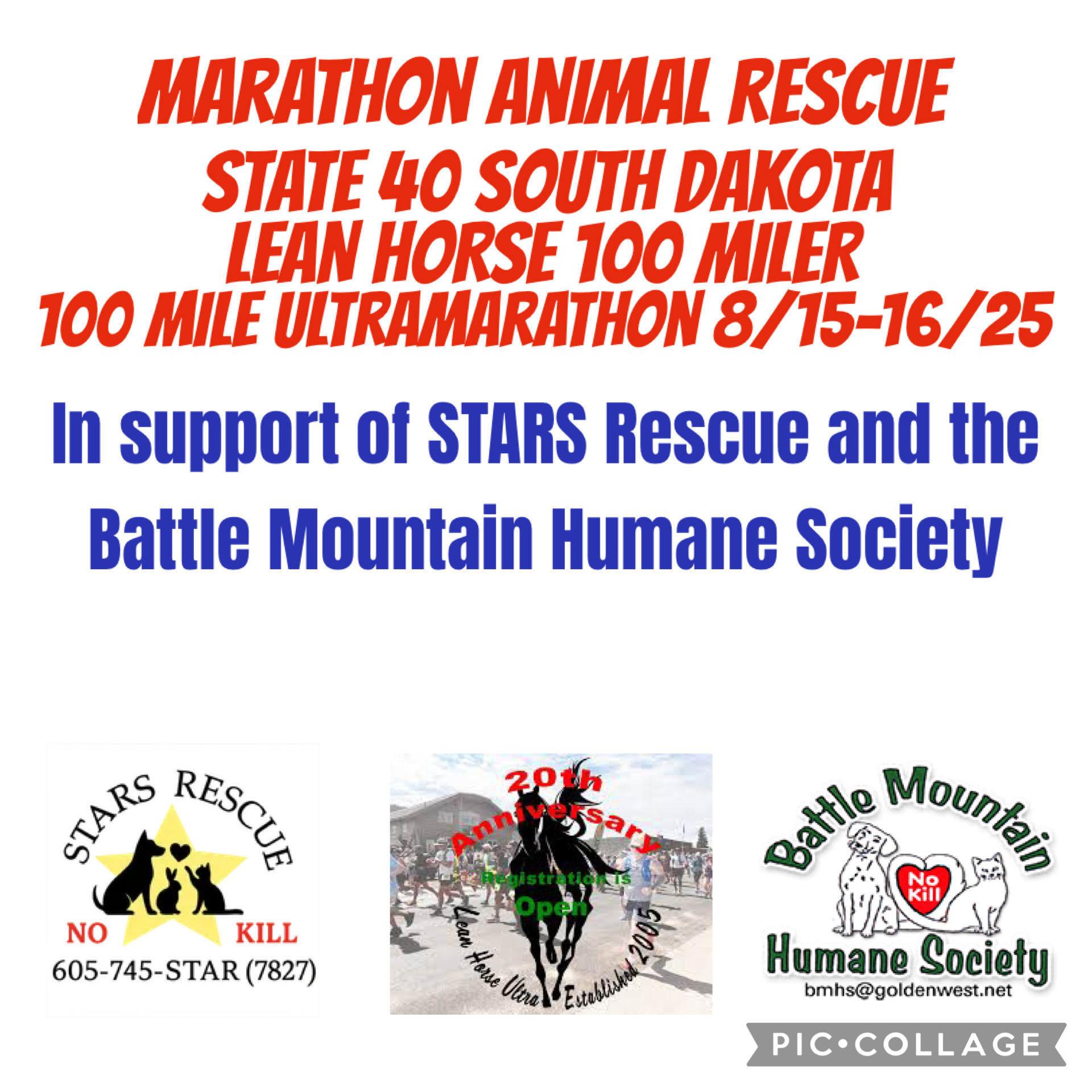 My next challenge will take place on 8/15-16/25 at the LEAN HORSE 100 MILE ULTRA in South Dakota. I will be running in support of two lifesaving, No-kill animal rescue organizations, the STARS Rescue and the Battle Mountain Humane Society.